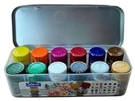 • 12 Vibrant Acrylic Colours (15ml Each) – Richly pigmented shades including classic colours + Metallic Gold & Silver for extra shine and creativity.