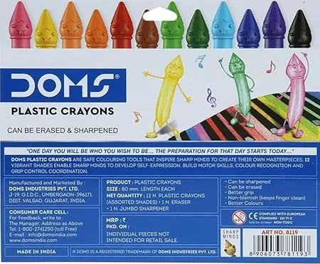 • DOMS Dommymate 12 Shades Plastic Crayons Erasable & Shapeneble