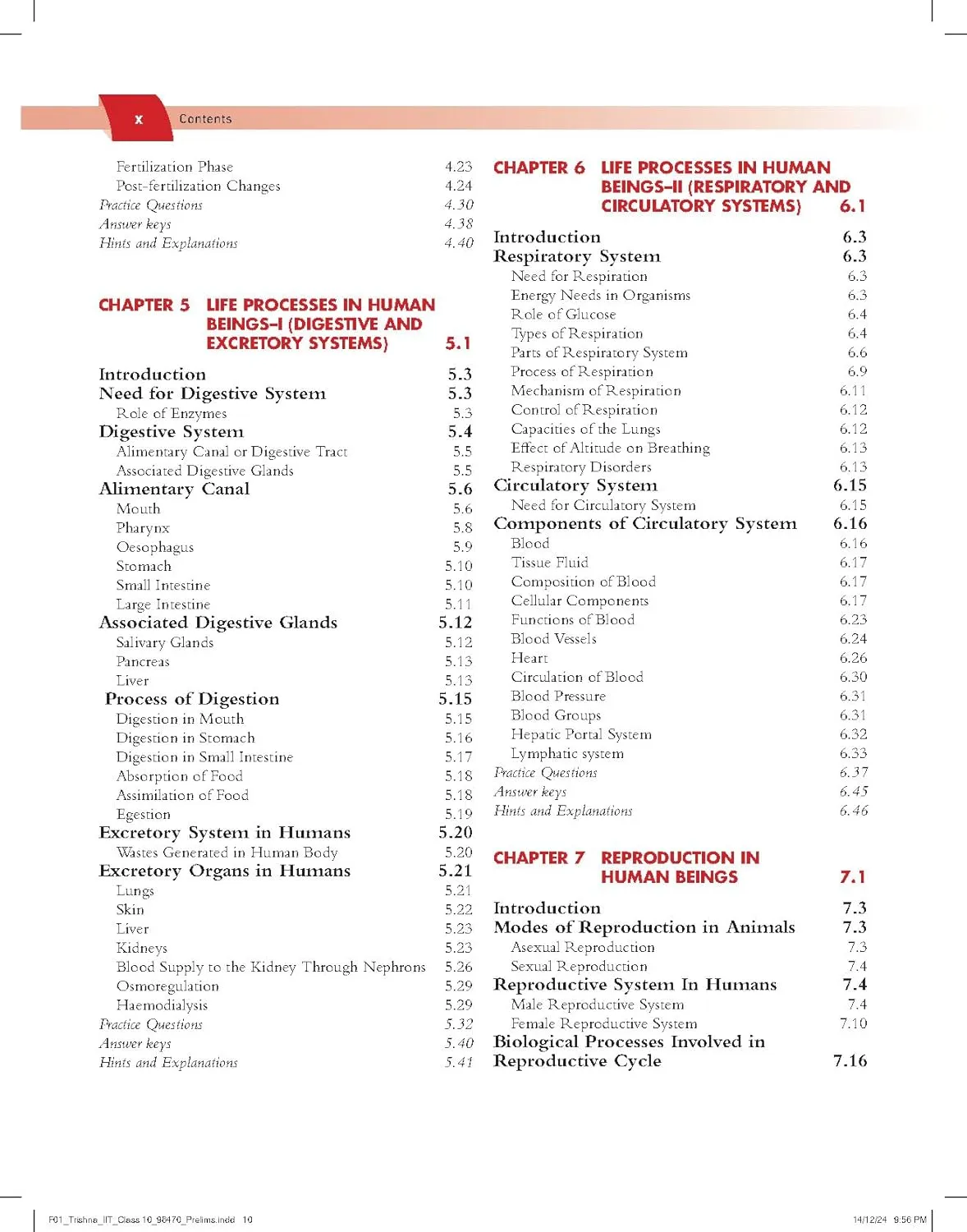 1. Cell—The Basic Unit of Life, 2. Cell Division And Cell Cycle, 3. Life Processes In Plants, 4. Reproduction In Lower Organisms And Plants, 5. Life Processes In Human Beings–I (Digestive And Excretory Systems), 6. Life Processes In Human Beings–II (Respiratory And Circulatory Systems), 7. Reproduction In Human Beings, 8. Control And Coordination, 9. Genetics, 10. Evolution, 11. Ecology, 12. Management of Natural Resources